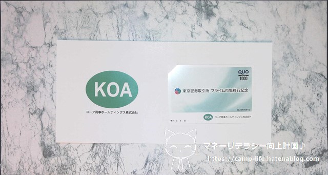 コーア商事ホールディングス(9273)からプライム市場移行記念の株主優待が届きました。
