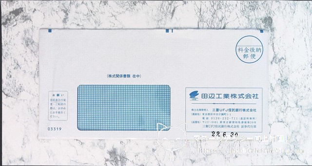2022年3月末権利の優待案内は2022年6月30日に届きました。