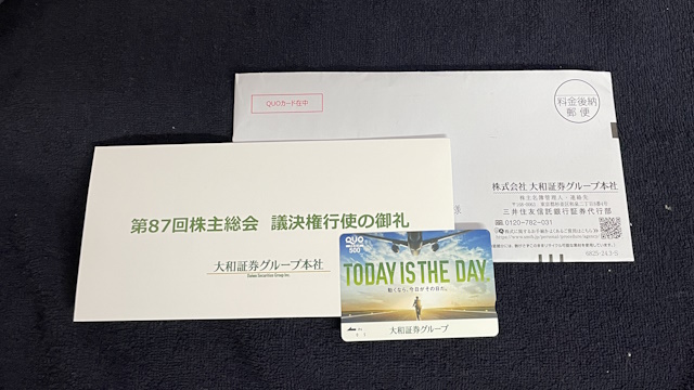 大和証券グループ本社(8601)から議決権行使のお礼が届きました(=゚ω゚)ノ
