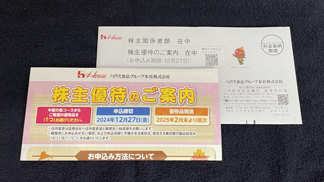 2024年9月末権利の優待案内は2024年12月10日に到着しました。