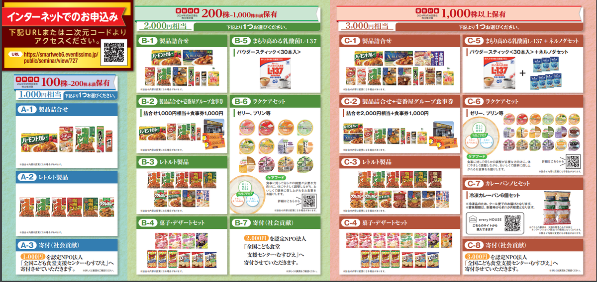 ハウス食品グループ本社(2810)から株主優待のご案内が届きました(=゚ω゚)ノ